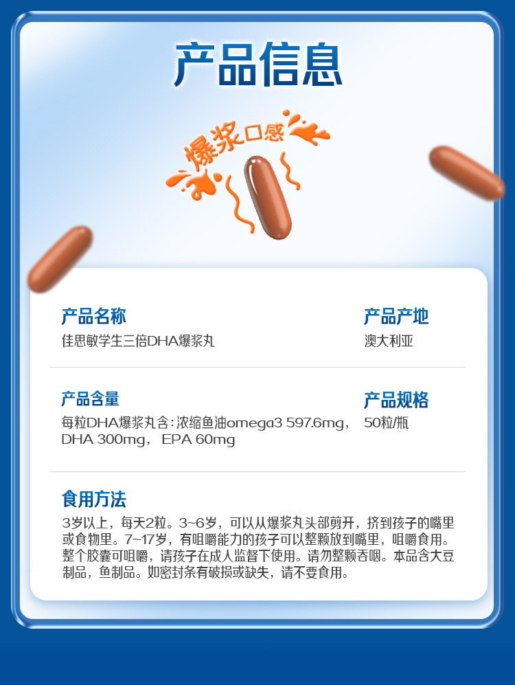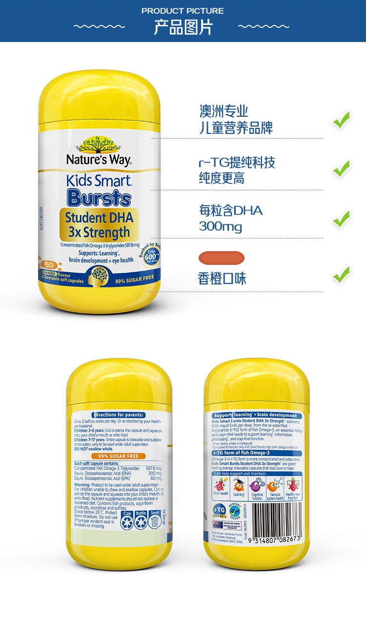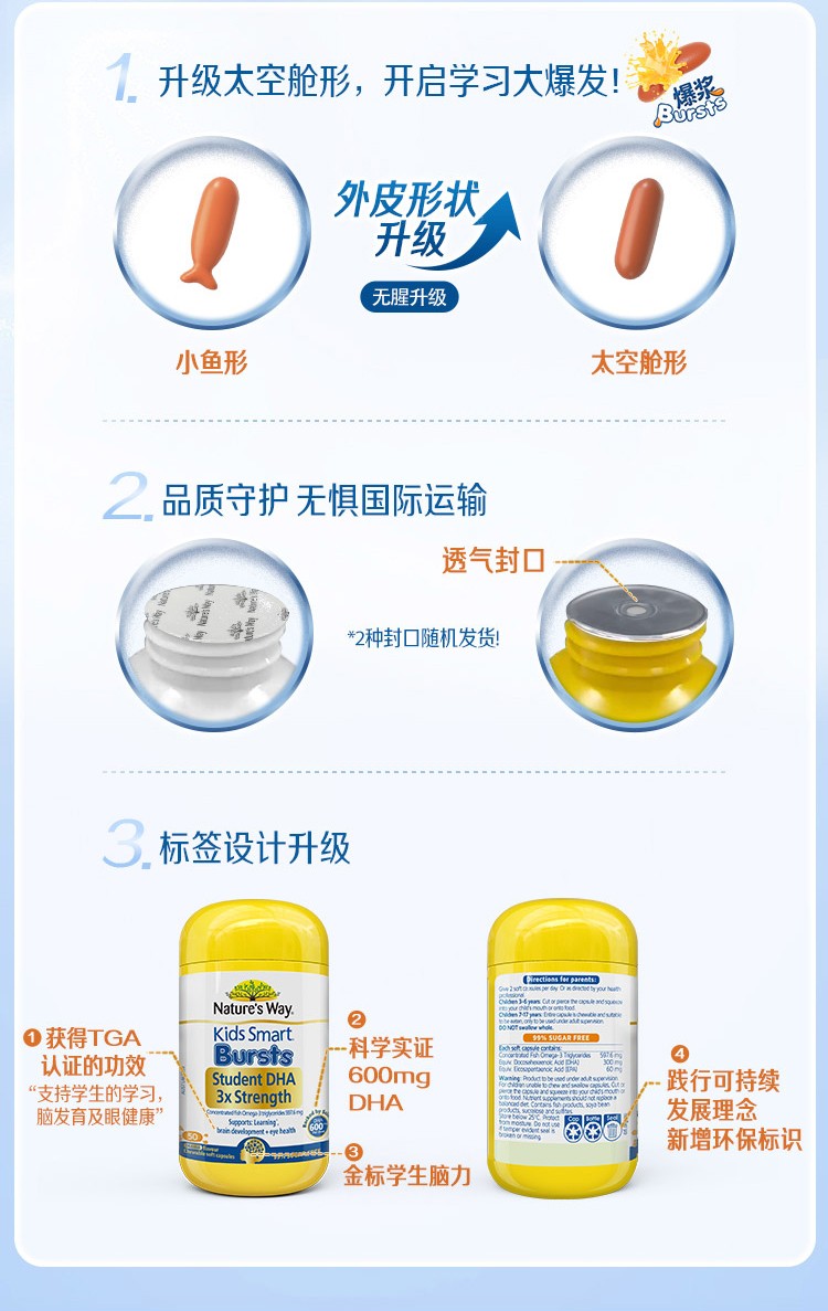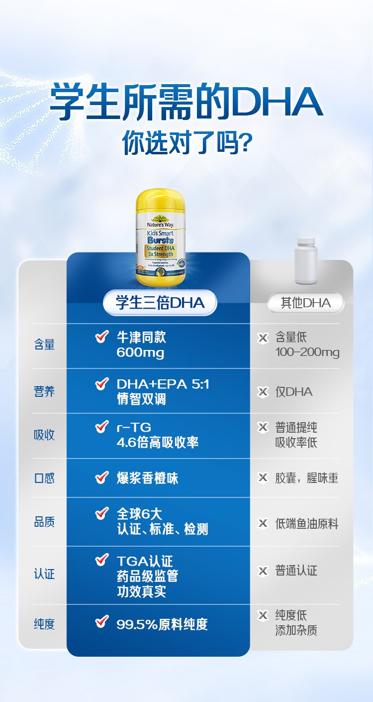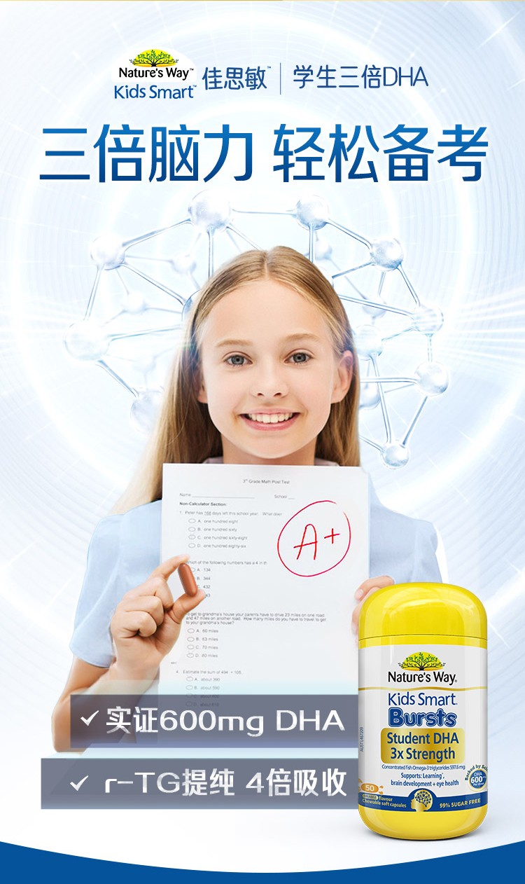 【融化不赔】NW 佳思敏三倍学生DHA50粒(新包装) 365快递